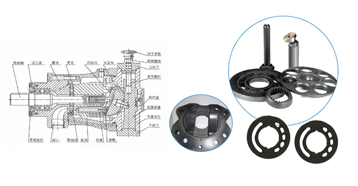 柱塞泵部件覆有自潤(rùn)滑涂層,在高壓和過(guò)載情況下,自潤(rùn)滑涂層可大幅提升搖擺與搖擺座、缸體與配油盤以及滑靴與回程盤等耐磨損性能、抗咬合性能。